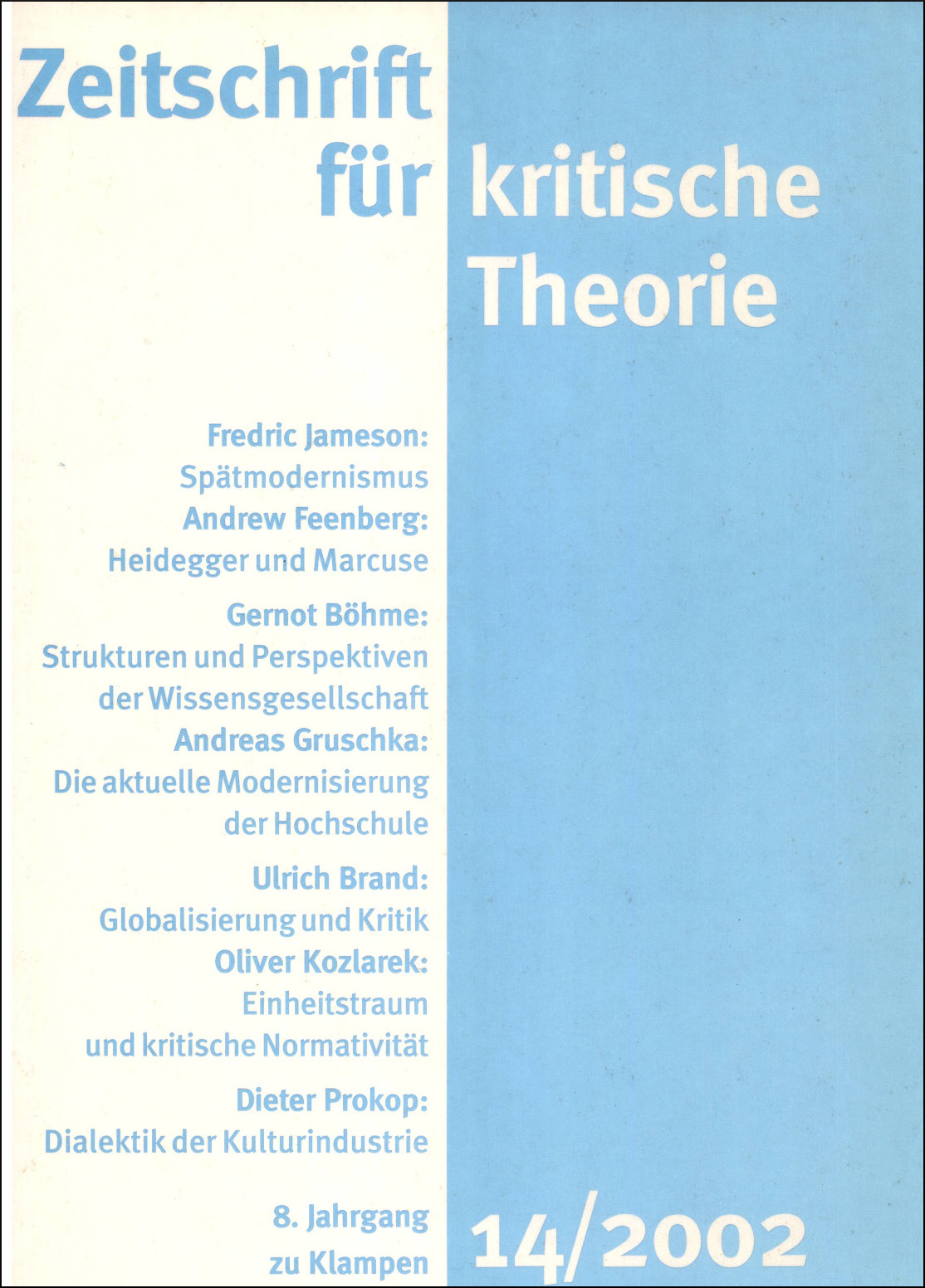 Zeitschrift für kritische Theorie / Zeitschrift für kritische Theorie, Heft 14 (2002)