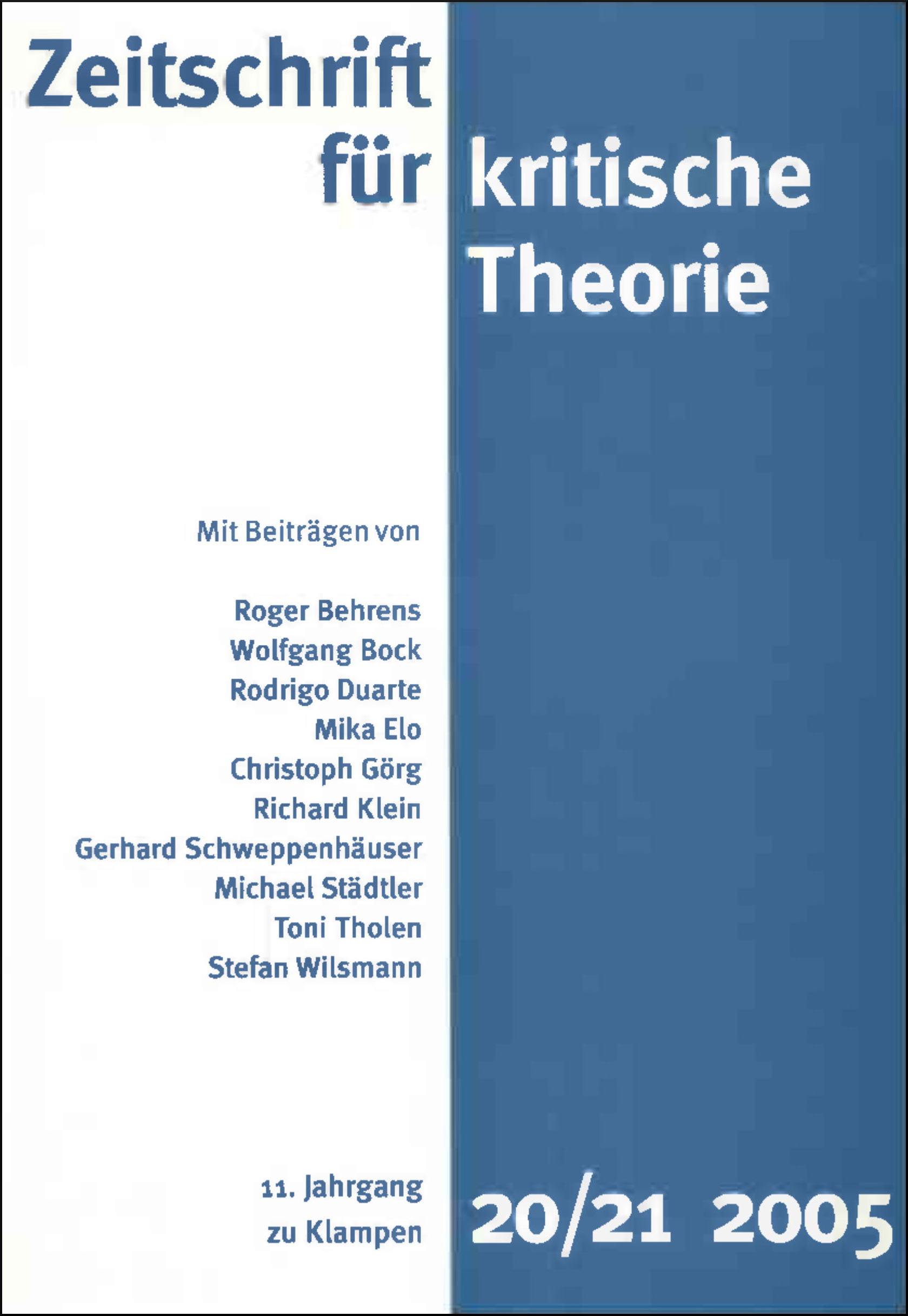 Zeitschrift für kritische Theorie / Zeitschrift für kritische Theorie, Heft 20/21 (2005)