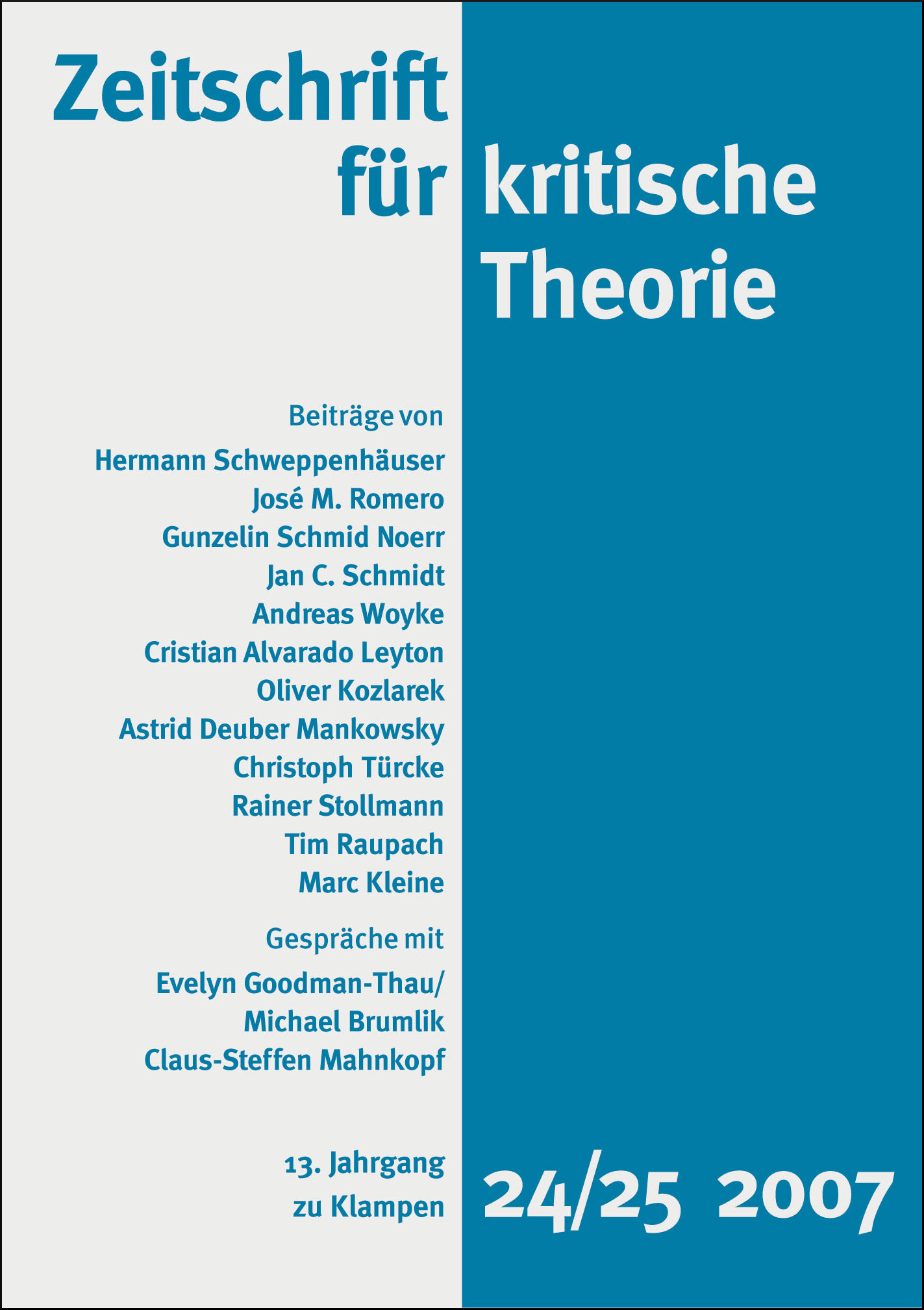 Zeitschrift für kritische Theorie / Zeitschrift für kritische Theorie, Heft 24/25 (2007)