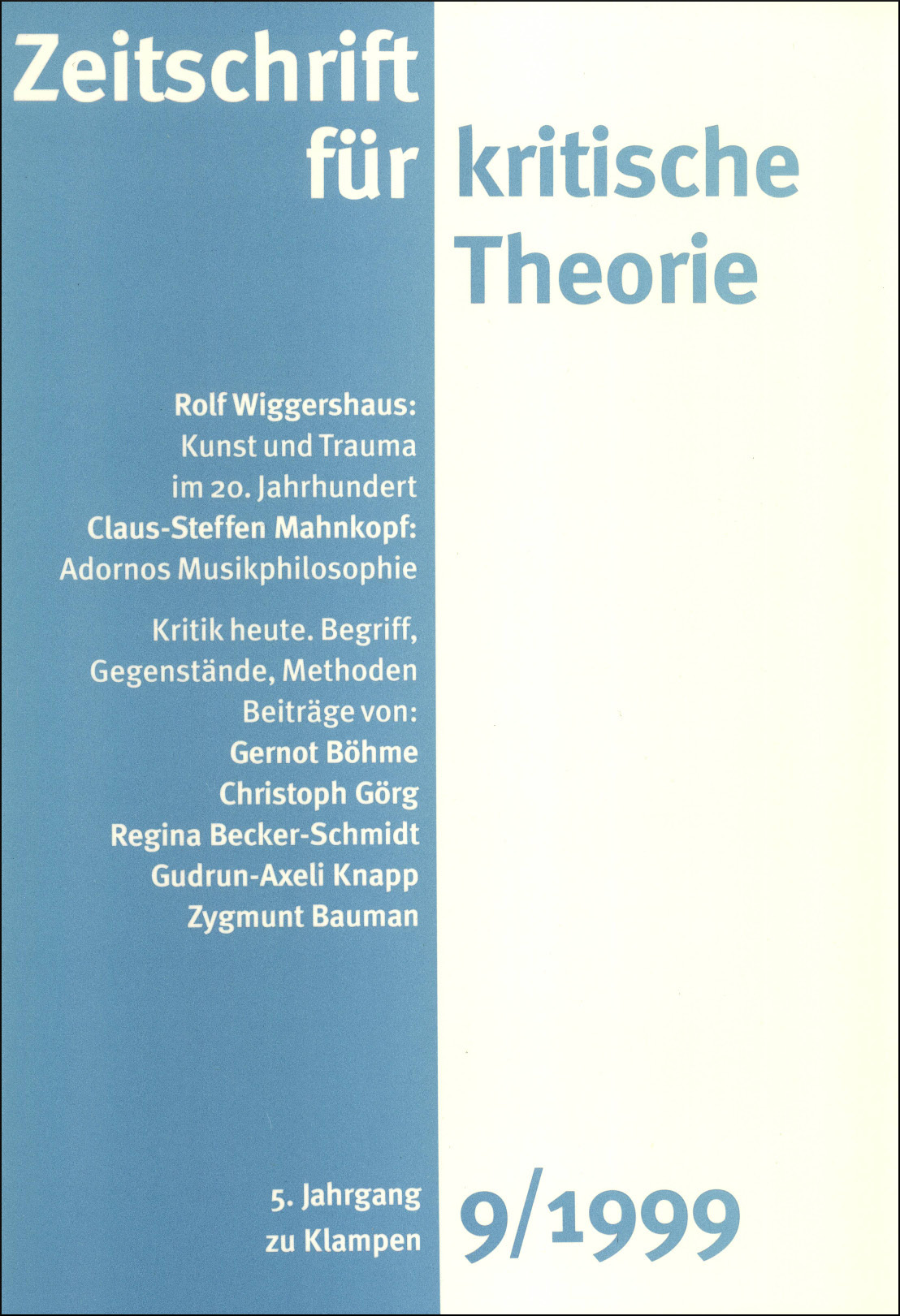 Zeitschrift für kritische Theorie / Zeitschrift für kritische Theorie, Heft 9 (1999)
