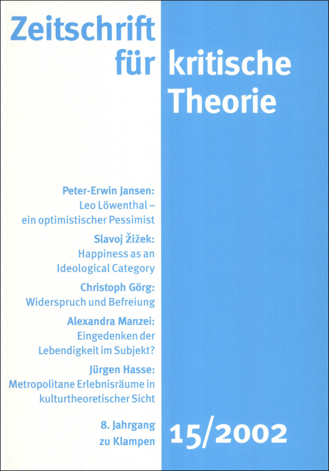 Zeitschrift für kritische Theorie / Zeitschrift für kritische Theorie, Heft 15 (2002)
