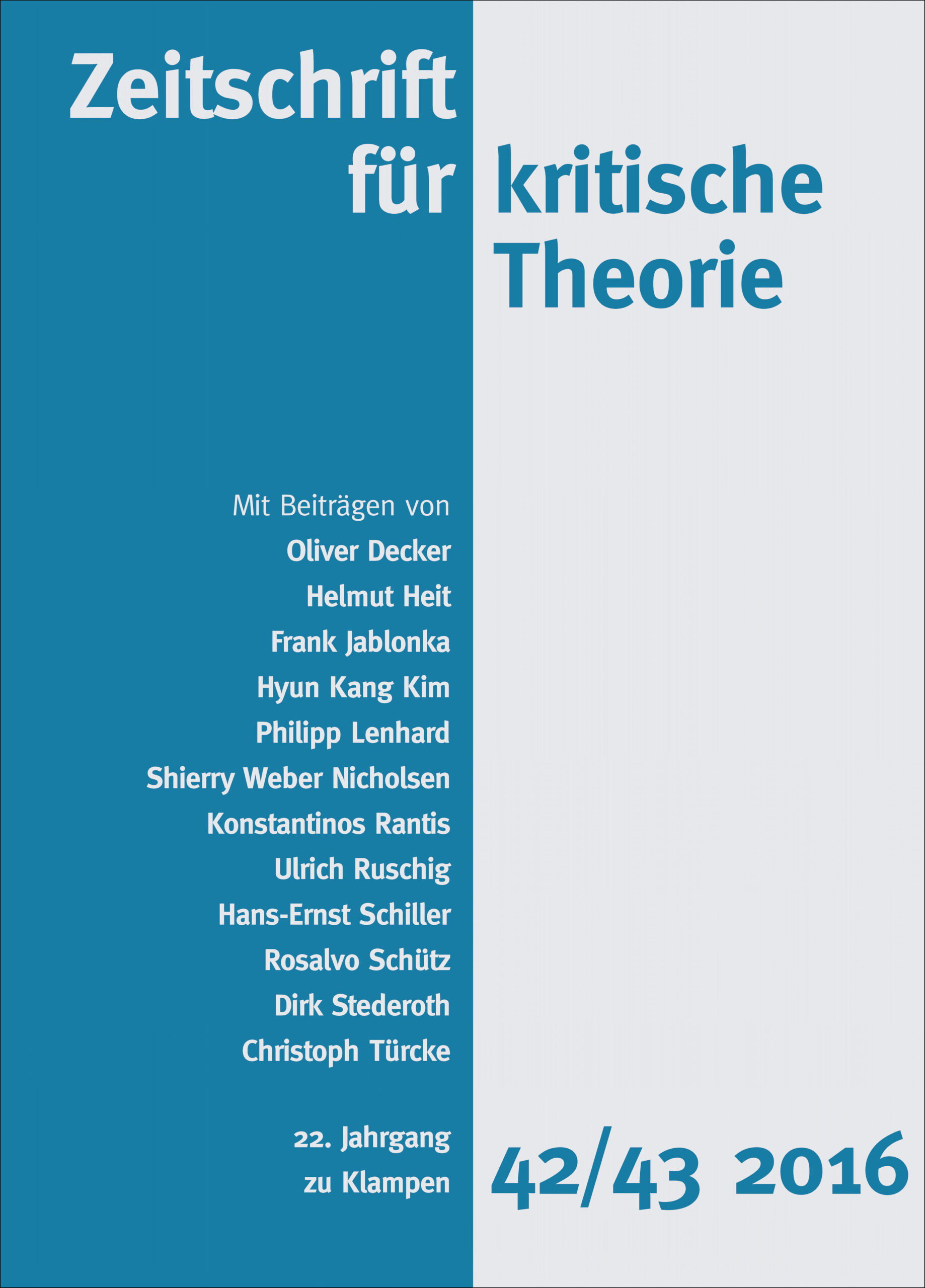 Die »Zeitschrift für kritische Theorie« ist ein Diskussionsforum für die materiale Anwendung kritischer Theorie auf aktuelle Gegenstände und bietet einen Rahmen für Gespräche zwischen den verschiedenen methodologischen Auffassungen heutiger Formen kritischer Theorie. Sie dient als Forum, das einzelne theoretische Anstrengungen thematisch zu bündeln und kontinuierlich zu präsentieren versucht. Mit Beiträgen von: – Oliver Decker – Helmut Heit – Frank Jablonka – Hyun Kang Kim – Philipp Lenhard – Schierry Weber Nicholsen – Konstantinos Rantis – Ulrich Ruschig – Hans-Ernst Schiller – Rosalvo Schütz – Dirk Stederoth – Christoph Türcke
