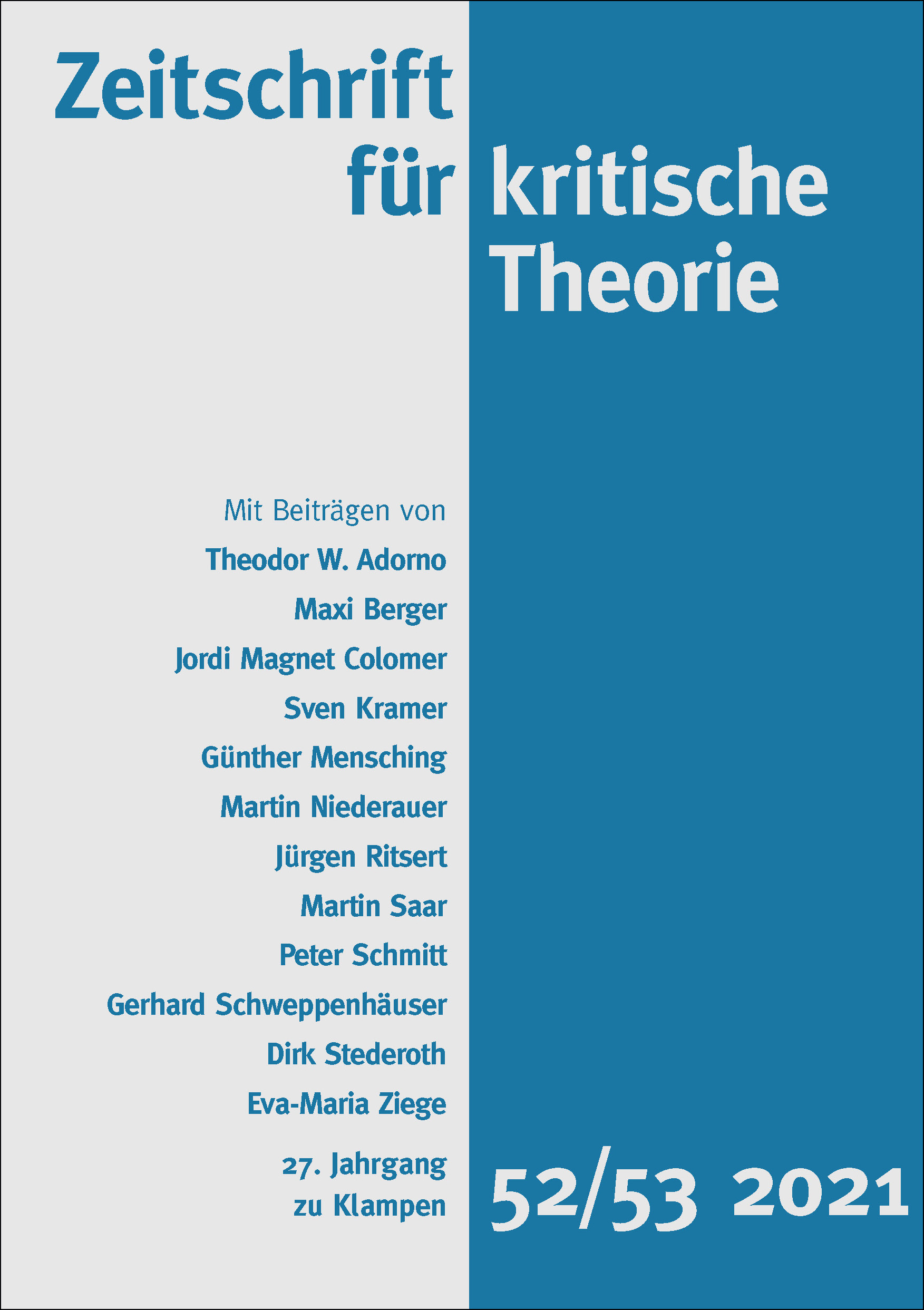 Die »Zeitschrift für kritische Theorie« ist ein Diskussionsforum für die materiale Anwendung kritischer Theorie auf aktuelle Gegenstände und bietet einen Rahmen für Gespräche zwischen den verschiedenen methodologischen Auffassungen heutiger Formen kritischer Theorie. Sie dient als Forum, das einzelne theoretische Anstrengungen thematisch bündelt und kontinuierlich zu präsentiert. www.zkt.zuklampen.de Die Ausgaben der ZkT sind nun auch elektronisch (als E-Book-PDF und auch kapitelweise) erhältlich und beziehbar über http://www.meiner-elibrary.de/zkt.